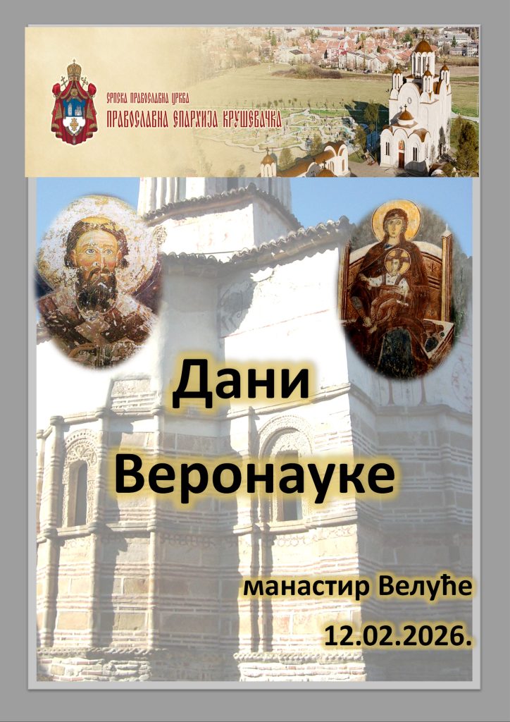 Конкурс „Дани веронауке“ расписује Српски православни манастир Ваведења Пресвете Богородице – Велуће под покровитељством Митрополије крушевачке са благословом Његовог Високопреосвештенства Митрополита крушевачког Г. др Давида, намењен је ученицима основних и средњих школа за најбољи рад на тему: